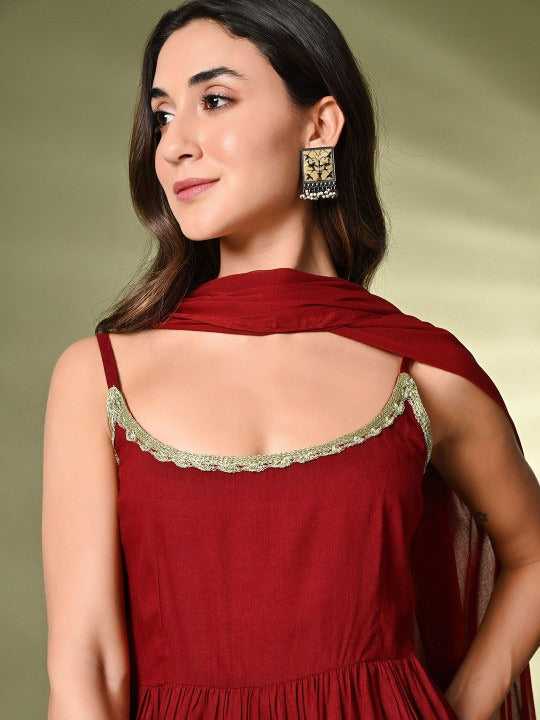MAROON ANGRAKHA BANDHEJ SUIT SET