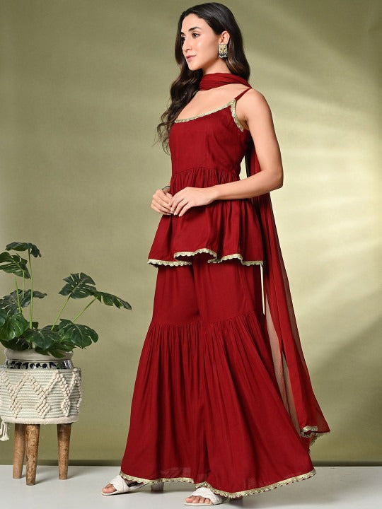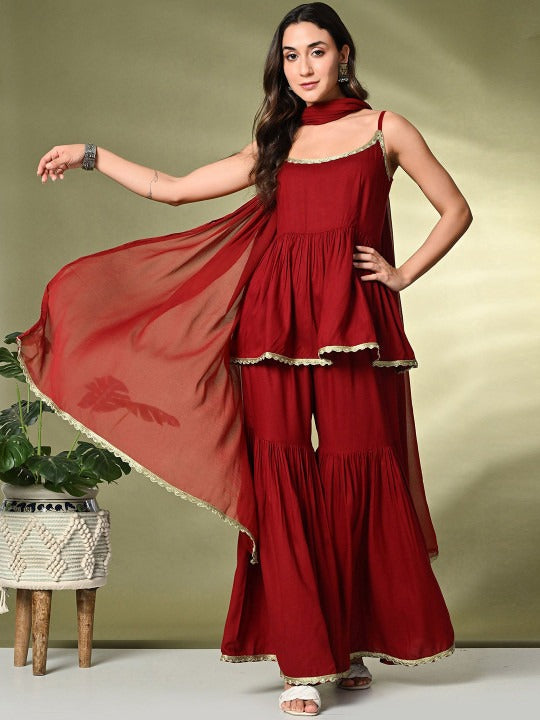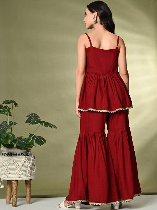 RED EMBROIDERED TOP WITH PALAZZO CO-ORDS
