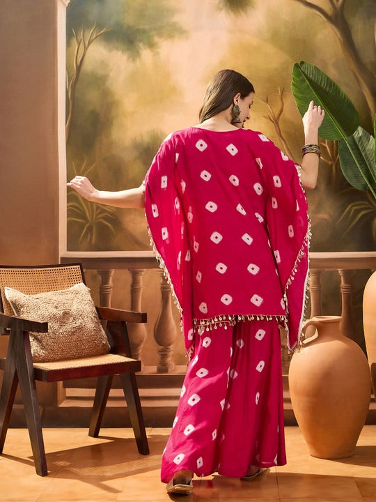 BANDHEJ PRINTED KAFTAN WITH SHARARA