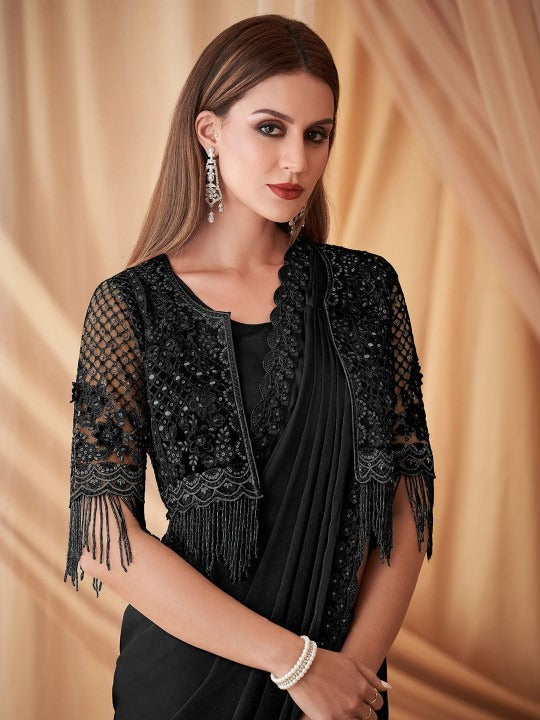 BLACK EMBELLISHED SEQUINNED PURE GEORGETTE SAREE