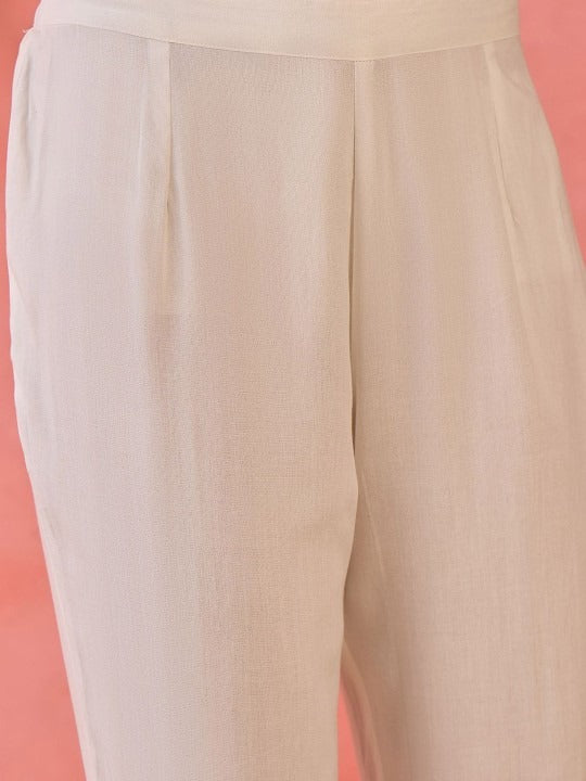 White solid mid-rise trousers has slip on closure, has elasitacated waistband