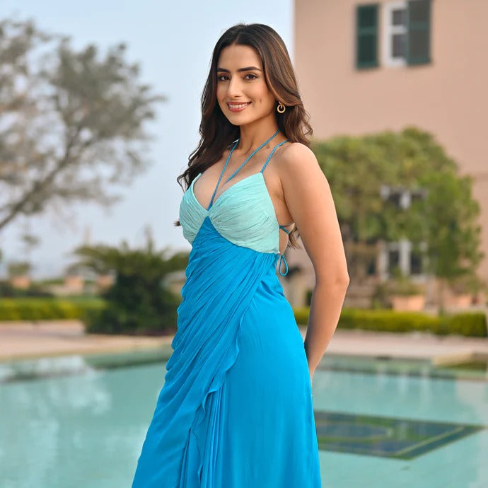Discover simplicity and elegance with the Colorwave Charm Long Dress, featuring beautiful shades of blue. Ideal for any setting, it effortlessly elevates your look, blending simplicity with elegance for a style that's both serene and chic.
