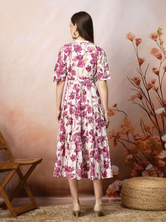 WOMEN FLORAL PRINTED FIT & FLARE MIDI DRESS