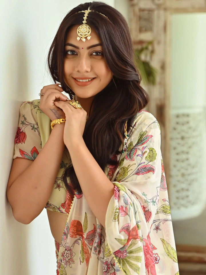 FLORAL PRINTED SATIN SAREE