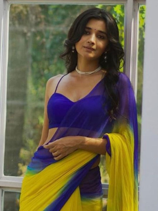 YELLOW SEQUIN ORGANZA RUFFLED SAREE