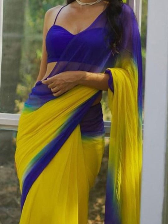 EMBROIDERED SILK BLEND READY TO WEAR SAREE