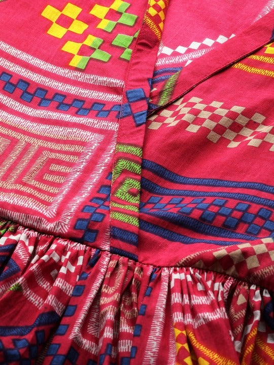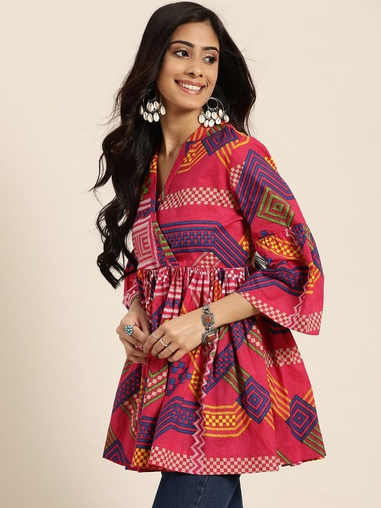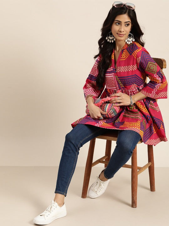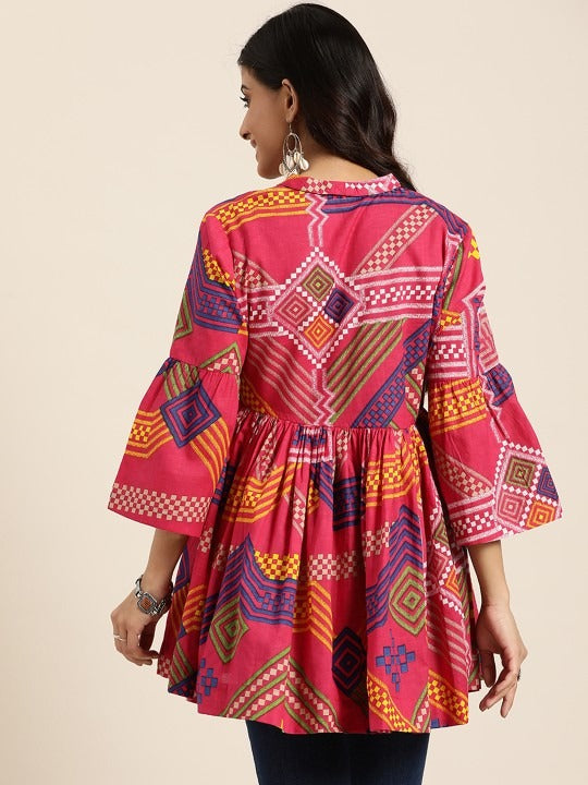 PINK & BLUE GEOMETRIC PRINTED A-LINE TOP
