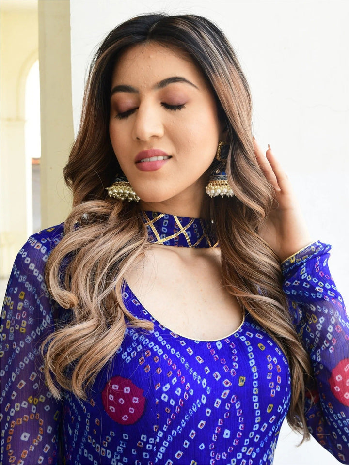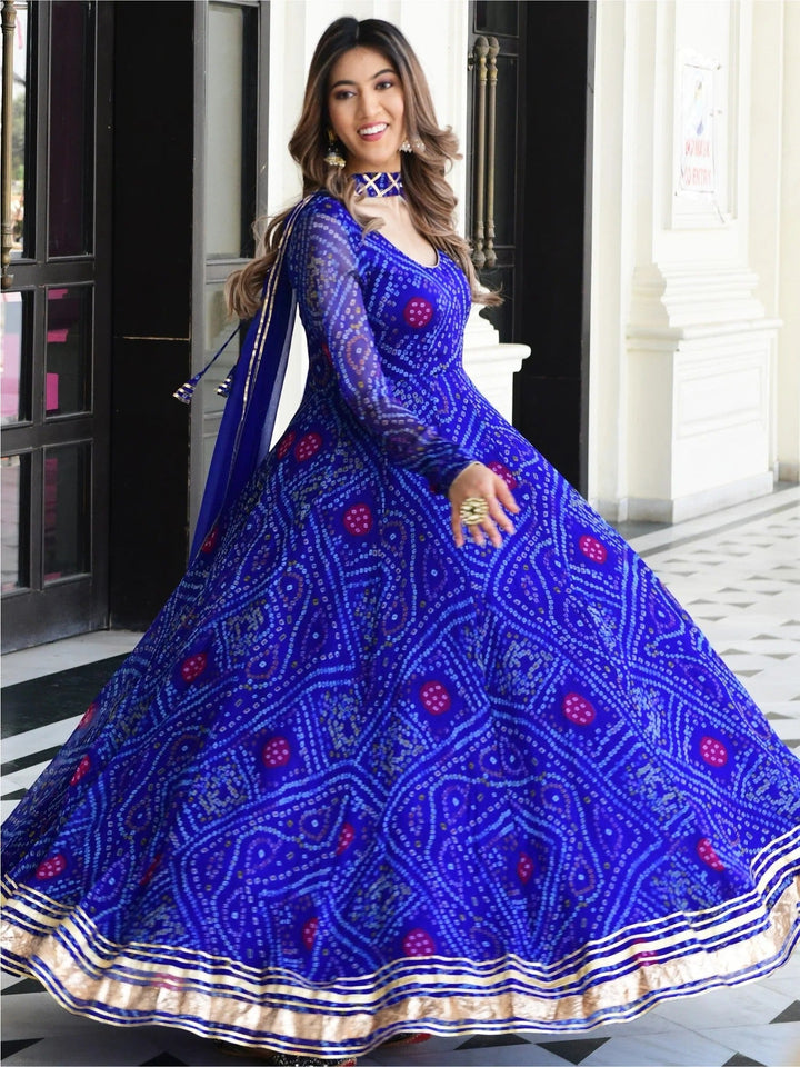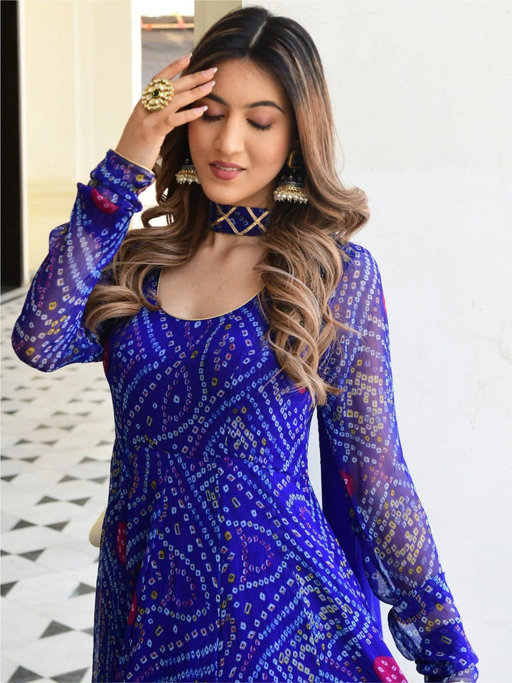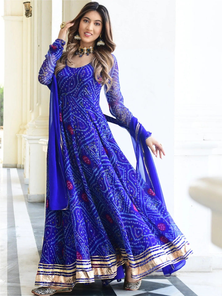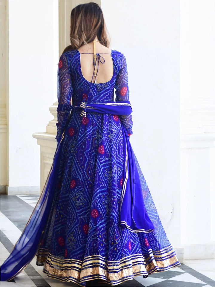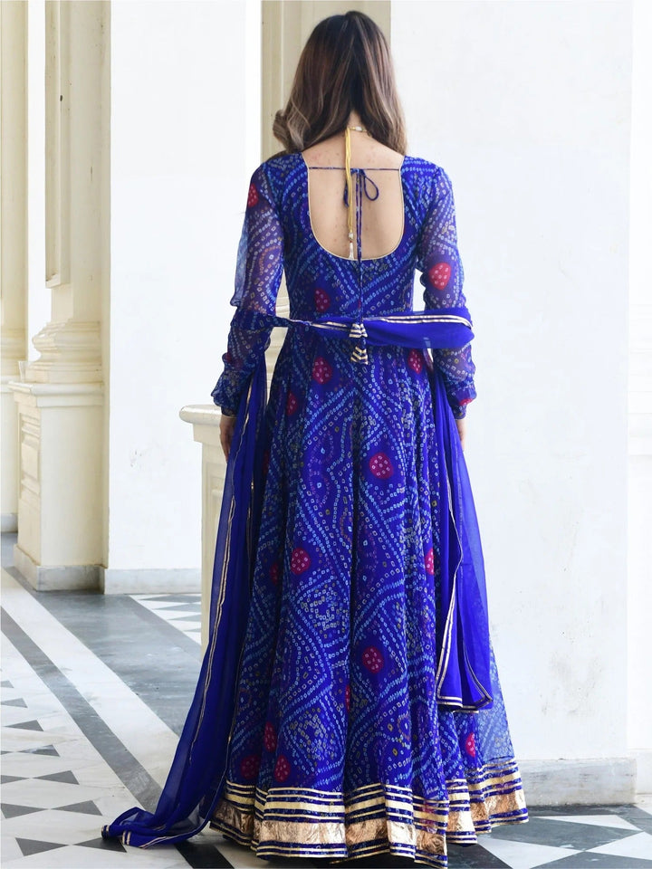 BLUE BANDHNI PRINT ANARKALI SET