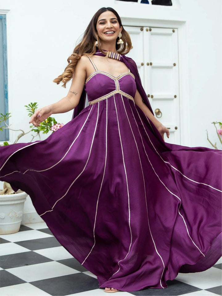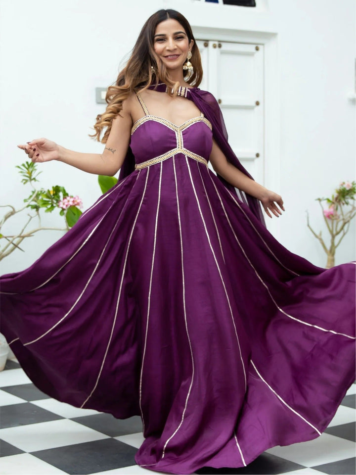 PURPLE SILK LONG DRESS WITH DUPATTA