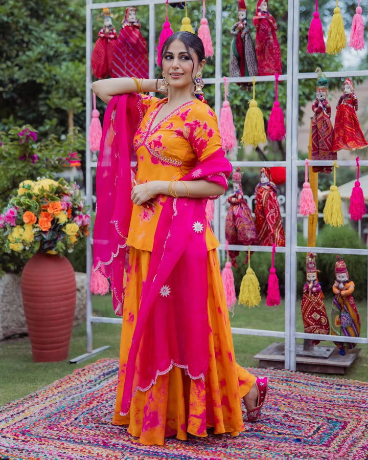Ritu Orange Pink Tie Dye Muslin Sharara Set
