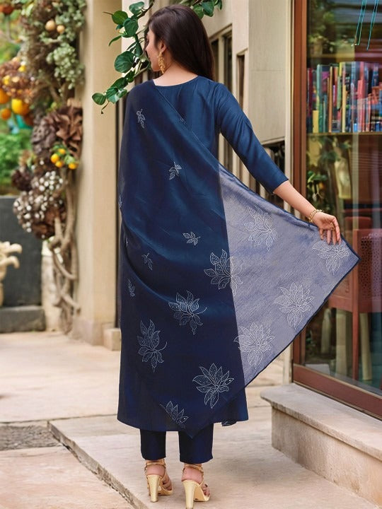 BLUE PRINTED KURTA WITH TROUSERS WITH DUPATTA
