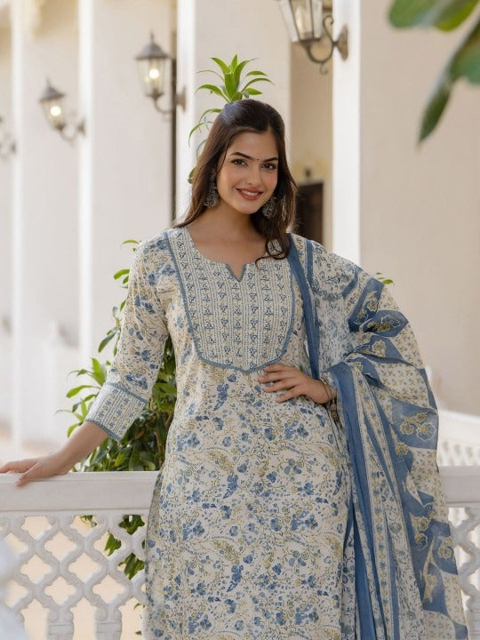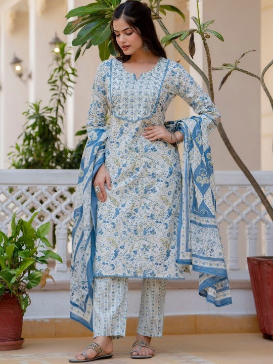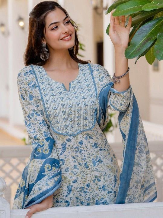 BLUE PRINTED KURTA WITH TROUSERS WITH DUPATTA