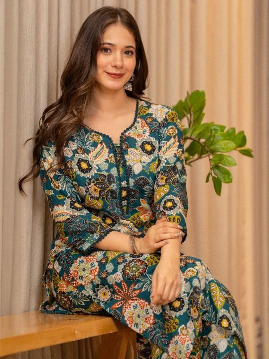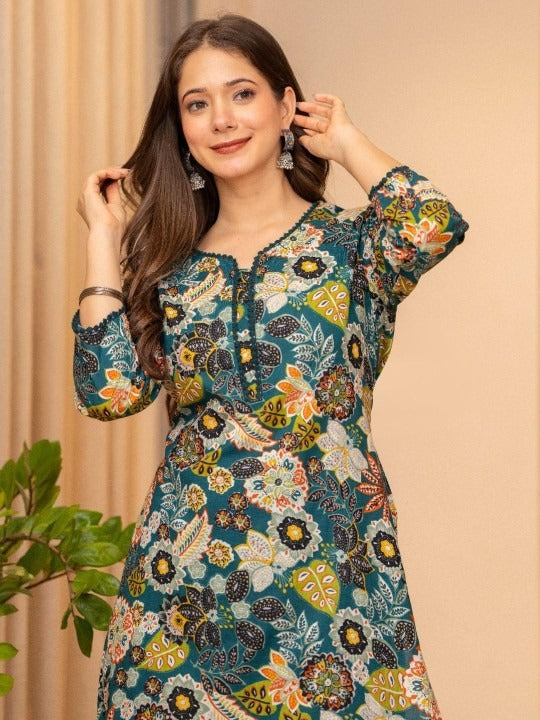 PRINTED SEQUINNED PURE COTTON KURTI