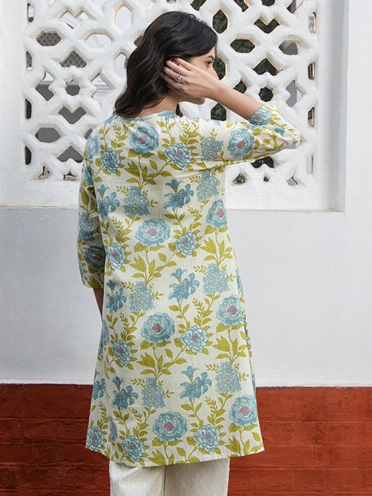 WHITE PURE COTTON FLORAL PRINTED REGULAR TUNIC