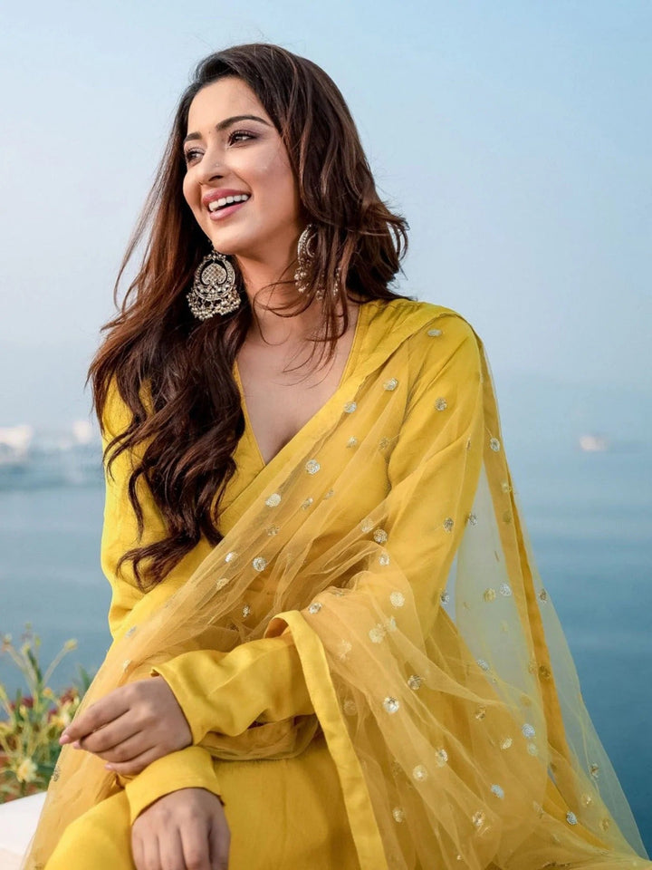 Elevate your style with this stunning Yellow Anarkali Dupatta Suit Set. The vibrant yellow hue adds a touch of sunshine to your look, while the flowing Anarkali silhouette exudes grace and elegance. Paired with a matching dupatta, this set is a perfect blend of tradition and contemporary charm, making you the epitome of sophistication and style.